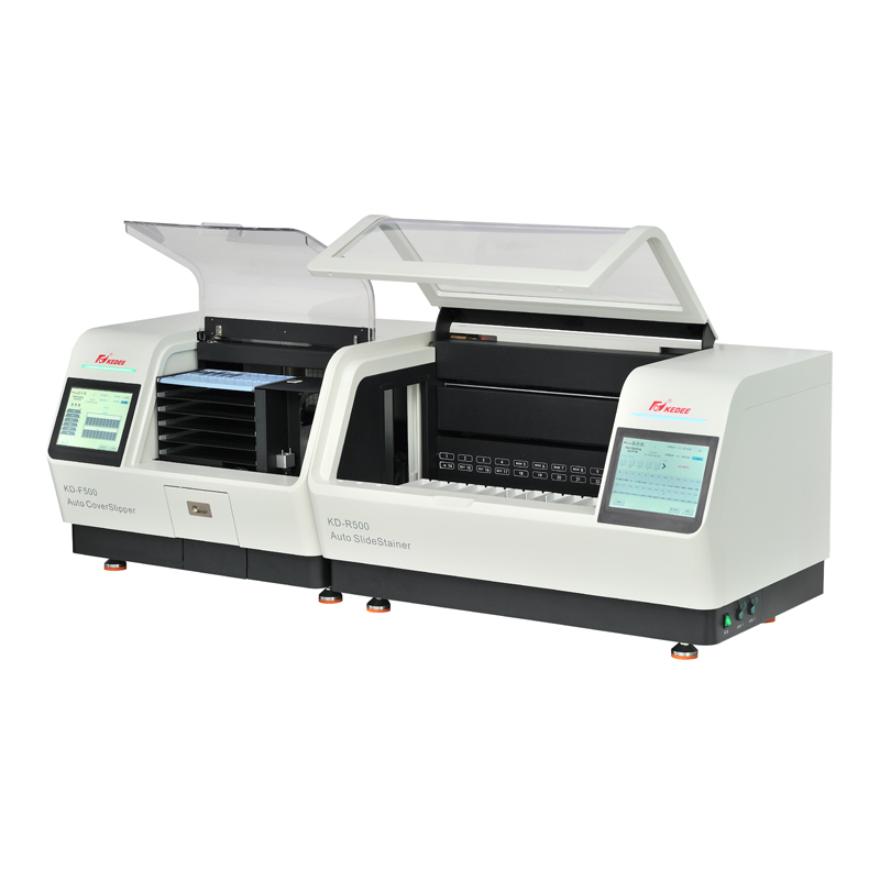 ◇ 智能化設計的染色、封片組合一體機可流水作業(yè),染色機、封片機,既可單獨使用,也可組合使用,客戶可根據需求靈活應用。封片機和染色機進行網線聯(lián)機操作即可
